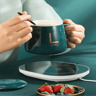 ✨ تمتع بتجربة فريدة مع هذا الطقم الراقي الذي يجمع بين الأناقة والعملية. الكوب الخزفي الفاخر بلونه الأخضر الملكي يأتي مع سخان كهربائي يحافظ على مشروبك ساخناً لوقت أطول ☕🫖✨